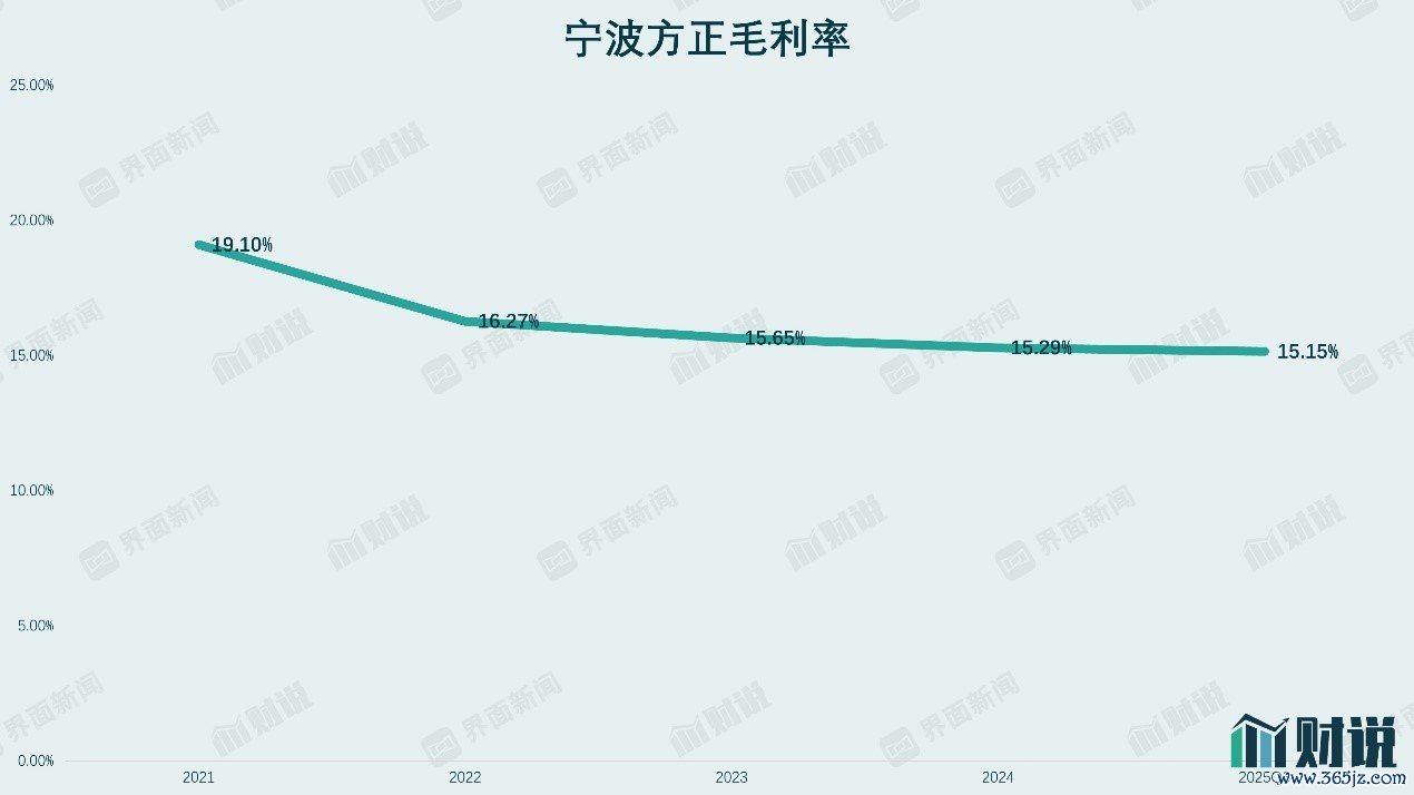 巨额有息负债直接推高了财务成本,2025年前三季度宁波方正财务费用高达2286万元,同比增长125%,这一数字已超过2024年全年的1364万元。“财务费用占营收比例已超 2.5%,而毛利率仅15.15%,利息支出正在不断吞噬本就微薄的利润空间。”陈应红表示。