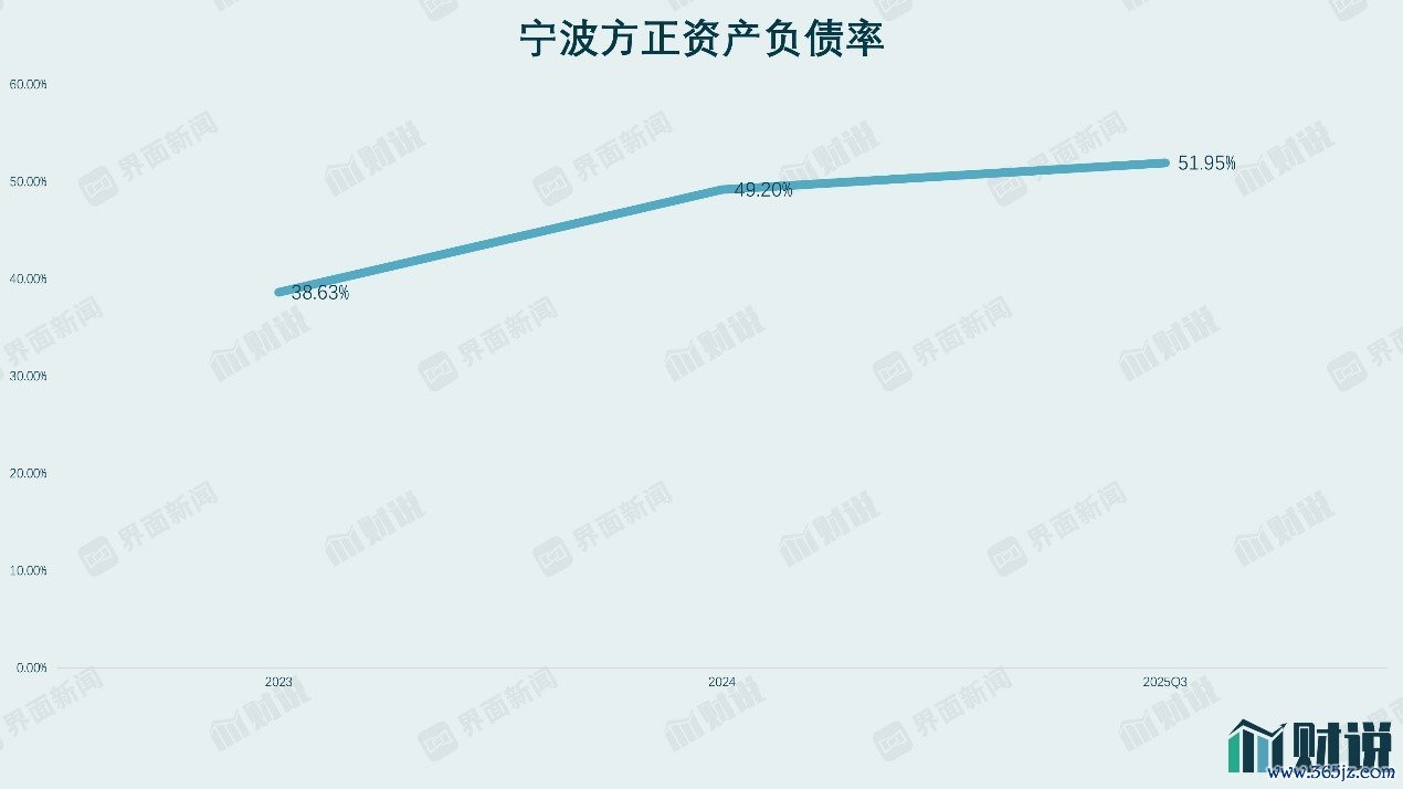 业绩亏损背后,宁波方正的资金链也日益紧绷。截至9月底,公司资产负债率已从 2023 年的38.63% 攀升至 51.95%,短短两年时间上升超 13 个百分点。